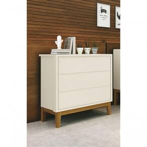 A Cômoda Gaveteiro Classic New - MóveisAqui, com um ar retrô o modelo de seus pés em madeira maciça, um desing clean que combina com vários estilos de decoração. É ótima para a organização das roupinhas e itens do seu bebê, possibilita um amplo espaço para armazenamento com suas três gavetas, de maneira que a organização do dia-a-dia possa ser mais fácil. Possui puxadores embutidos, onde as aberturas ocorrem através de recortes no MDF que possibilitam o perfeito encaixe da mão para que possa abrir as portas e gavetas.