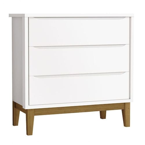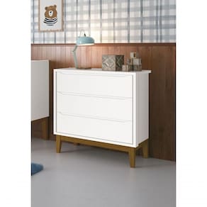 A Cômoda Gaveteiro Classic New - MóveisAqui, com um ar retrô o modelo de seus pés em madeira maciça, um desing clean que combina com vários estilos de decoração. É ótima para a organização das roupinhas e itens do seu bebê, possibilita um amplo espaço para armazenamento com suas três gavetas, de maneira que a organização do dia-a-dia possa ser mais fácil. Possui puxadores embutidos, onde as aberturas ocorrem através de recortes no MDF que possibilitam o perfeito encaixe da mão para que possa abrir as portas e gavetas.