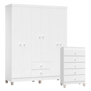 Cômoda Gaveteiro e Guarda Roupa 6 Portas Baby Kids Branco Brilho Incorplac