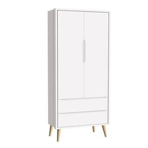 Guarda Roupa Infantil Theo 2 Portas Branco Acetinado com Pés Madeira Natural ? Reller