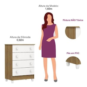 Cômoda Gaveteiro Mel Flat Branco Acetinado Amadeirado - Carolina