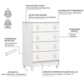 A cômoda ideal para o quartinho do seu pequeno você encontra aqui! Apresentamos essa linda opção desenvolvida pela Carolina Baby. A Cômoda Gaveteiro conta com 4 gavetas amplas e espaçosas que irá lhe auxiliar no seu dia a dia na hora de organizar as roupinhas e acessórios, além de um lindo design proporcionando modernidade ao ambiente e aquele toque a mais na decoração, fabricada com excelentes materiais para maior durabilidade e resistência do móvel. Não deixe de aproveitar e garantir a sua!