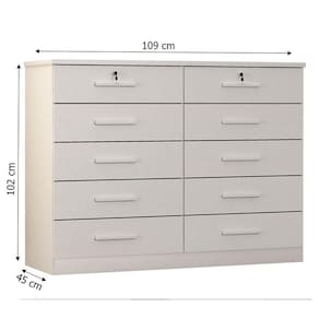 Precisando de uma cômoda para ter mais praticidade no seu dia? Apresentamos a linda cômoda gaveteiro da linha Milão, possui 10 gavetas sendo 2 delas com chave proporcionando amplo espaço para organizar itens de sua preferência. Os materiais de fabricação são de alta qualidade em MDP/MDF garantindo durabilidade e resistência. As gavetas são esquipadas com corrediças telescópicas garantindo mais qualidade e suavidade ao manusear. Não perca mais tempo venha aproveitar e garantir já a sua!