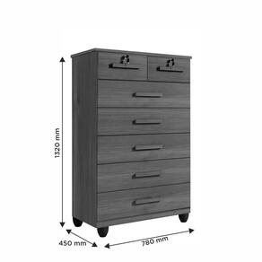 Cômoda Gaveteiro New Espanha 7 Gavetas - Benetil Cinamomo A Comoda New Espanha e uma peca que une charme e elegancia a qualquer ambiente. Com design sofisticado e estrutura robusta em chapa de 15 mm, oferece durabilidade e firmeza. Suas sete gavetas, duas delas com chave para seguranca extra, e corredicas telescopicas garantem suavidade e praticidade no uso diario, mantendo roupas e acessorios organizados de forma impecavel. Produzida com a tecnologia MDP Perfect, combina sustentabilidade com inovacao, oferecendo alta durabilidade e facil manutencao. A pintura UV, alem de resistente, e ecologicamente responsavel, feita com madeira de reflorestamento, promovendo um mobiliario sustentavel e elegante. Caracteristicas: Material Principal Mdp Espessura Da Chapa: 15 Mm Escala De Brilho: Semi Brilho Acabamento: Pintura UV Sistema De Montagem: Parafuso, Cavilha E Cantoneiras Metalicas Quantidade de Gavetas: 07