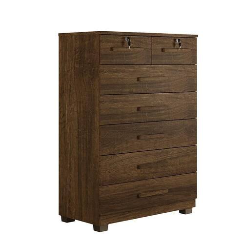 Cômoda Gaveteiro New Espanha 7 Gavetas - Benetil Imbuia A Comoda New Espanha e uma peca que une charme e elegancia a qualquer ambiente. Com design sofisticado e estrutura robusta em chapa de 15 mm, oferece durabilidade e firmeza. Suas sete gavetas, duas delas com chave para seguranca extra, e corredicas telescopicas garantem suavidade e praticidade no uso diario, mantendo roupas e acessorios organizados de forma impecavel. Produzida com a tecnologia MDP Perfect, combina sustentabilidade com inovacao, oferecendo alta durabilidade e facil manutencao. A pintura UV, alem de resistente, e ecologicamente responsavel, feita com madeira de reflorestamento, promovendo um mobiliario sustentavel e elegante. Caracteristicas: Material Principal Mdp Espessura Da Chapa: 15 Mm Escala De Brilho: Semi Brilho Acabamento: Pintura UV Sistema De Montagem: Parafuso, Cavilha E Cantoneiras Metalicas Quantidade de Gavetas: 07