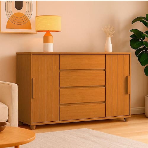 4 gavetas grandes com reforço interno e corrediças telescópicas, proporcionando abertura suave e maior resistência;