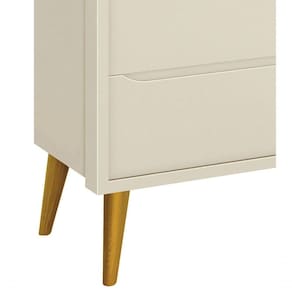 A Cômoda GaveteiroTheo New - MóveisAqui, apresenta um ar retrô com seus pés em madeira maciça no estilo palito, possui um desing clean que combina com vários estilos de decoração. É perfeita para a organização das roupinhas e itens do seu bebê, possibilita um super espaço para armazenamento com suas três gavetas, de modo que a organização do dia-a-dia possa ser mais fácil. Possui puxadores embutidos, onde as aberturas ocorrem através de recortes no MDF que possibilitam o perfeito encaixe da mão para que possa abrir as portas e gavetas.