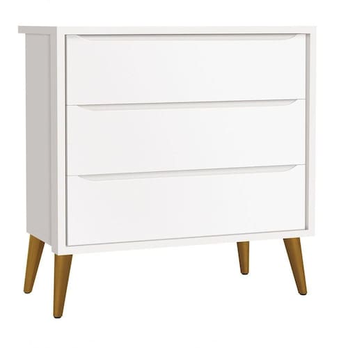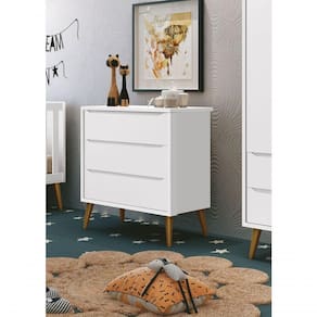 A Cômoda GaveteiroTheo New - RELLER, apresenta um ar retrô com seus pés em madeira maciça no estilo palito, possui um desing clean que combina com vários estilos de decoração. É perfeita para a organização das roupinhas e itens do seu bebê, possibilita um super espaço para armazenamento com suas três gavetas, de modo que a organização do dia-a-dia possa ser mais fácil. Possui puxadores embutidos, onde as aberturas ocorrem através de recortes no MDF que possibilitam o perfeito encaixe da mão para que possa abrir as portas e gavetas.