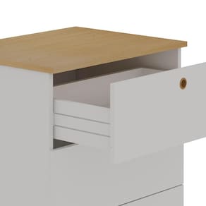 ESPECIFICAÇÕES - Possui 4 gavetas - Estrutura em MDP/BP 15 mm - Tampo padrão amadeirado Savana - Puxador plástico - Corrediça plástica - Acabamento com pintura UV