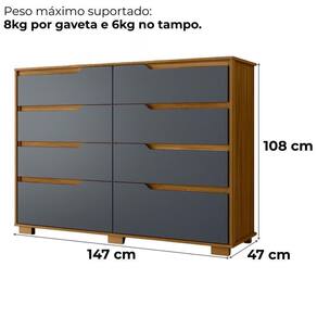 A Cômoda Georgia alia funcionalidade e design moderno para organizar seu ambiente com estilo. Estrutura em MDP (gavetas e tampo 15 mm / base e fundo 12 mm) com acabamento em pintura UV. Conta com 8 gavetas (sendo 2 gavetões) equipadas com corrediças metálicas, puxadores em cava e pés em PVC. Possui sistema de montagem flexível, permitindo instalar as gavetas em duas posições diferentes conforme a necessidade. Este produto será entregue em 02 volumes.