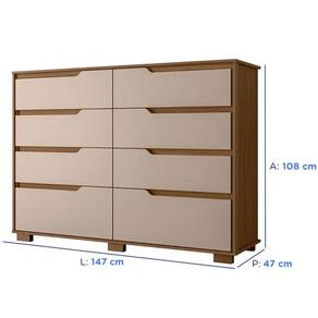 Espaço e qualidade! Se você preza por qualidade e um design compacto, a Cômoda Moval é a melhor opção! Ela conta com 8 gavetas com corrediças telescópicas, proporcionando mais durabilidade. Todas as gavetas possuem puxadores usinados, e a cômoda também conta com pés em PVC, que facilitam a limpeza. Graças ao seu design compacto e aos seus pés ajustáveis, ela se encaixa perfeitamente em qualquer espaço da sua casa. Além disso, suas 8 gavetas oferecem um espaço livre para guardar o que você quiser! Você pode colocar fotos, plantas e outros itens decorativos sobre ela. A Cômoda Moval é fabricada inteiramente em MDP de alta qualidade, garantindo mais resistência e elegância.