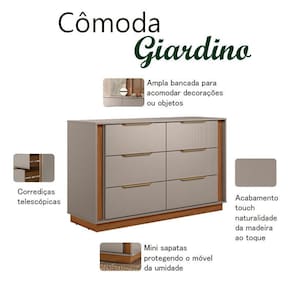Cômoda Giardino 6 Gavetas Nogueira Nude Prime Tx - Demóbile