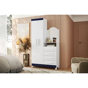 Cômoda Giorgia Branco Azul Titanium Rosa Com Espelho O Guarda Roupa/Cômoda é perfeito para espaços pequenos, com amplo espaço.
