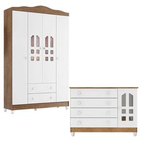 Cômoda Gran Selena e Guarda Roupa Infantil New Selena 4 Portas Branco Brilho – Carolina