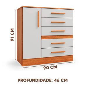 Dimensões da Cômoda:Largura 90 cm; Profundidade 46 cm;Altura 91 cm.