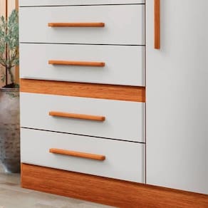 Puxador Topázio Slim MDF: Oferece um design sofisticado e ergonômico, facilitando a abertura das gavetas com estilo.