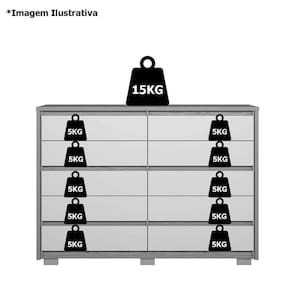 Característica da Cômoda 10 Gavetas Duello: - Estrutura em MDP; - Acabamento de pintura em UV; - Tampo e molduras de 25 mm; - 10 Gavetas com corrediças telescópicas; - 6 pés em ABS; - Não acompanha itens de decoração ou quaisquer objetos fora o móvel na imagem; - Imagens interna meramente ilustrativa para ver a divisão do produto; - Montagem por conta do comprador;