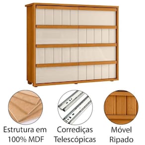Cômoda Grande 8 Gavetas 100% Mdf Ripada Talita Cinamomo/off White A Cômoda Talita é produzida com material 100% MDF e acabamento em pintura UV, garantindo durabilidade e resistência ao desgaste do dia a dia. Com 8 gavetas espaçosas, cada uma equipada com corrediças telescópicas para um deslizamento suave e silencioso, oferece amplo espaço para organização. Os puxadores em MDF estilo ?cava? são funcionais e acompanham o design ripado do móvel, proporcionando um toque moderno e sofisticado. A estrutura conta com moldura envoltória de MDF de 25mm, 6 pés em poliestireno de 50mm que elevam a peça facilitando a limpeza, e o sistema de montagem Girofix que assegura praticidade e firmeza na instalação. Dimensões da Cômoda de Quarto em MDF Ripada 8 Gavetas 6 Pés: Altura: 117 cm Largura: 136 cm Profundidade: 45 cm