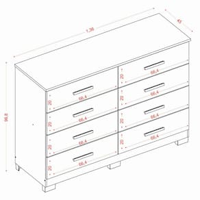 Dimensões da Cômoda 8 Gavetas Amora: