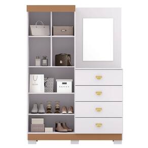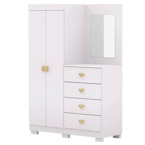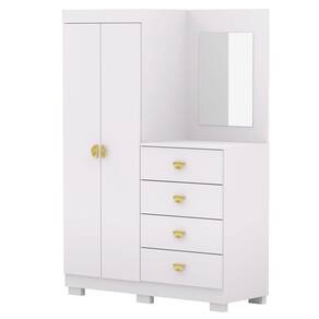 Cômoda Guarda-Roupa com 4 Gavetas e 5 Prateleiras com Espelho Cristine - Branco