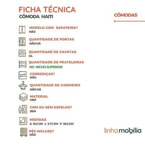 Descubra a elegância funcional da Cômoda Haiti. Criada com precisão e qualidade incomparáveis, esta peça é totalmente confeccionada em MDF, garantindo durabilidade e estilo. Com 4 gavetas equipadas com corrediças telescópicas, o acesso aos seus pertences será suave e eficiente. Os puxadores em MDF revestido adicionam um toque de sofisticação. Além disso, o nicho superior oferece espaço extra para exibir seus objetos favoritos. Transforme seu ambiente com a Cômoda Haiti, onde funcionalidade encontra design impecável.