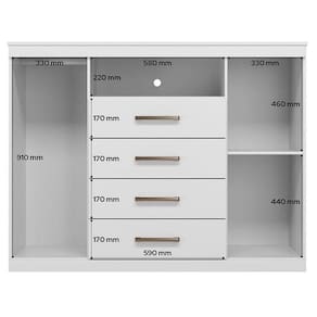 Comoda Havana Master com rodizio Branco: A Cômoda Havana Master é espaço e funcionalidade para seu quarto: duas portas (uma com cabideiro), quatro gavetas espaçosas e tampo. Pés elevam o móvel facilitando a limpeza e o acabamento traz um toque elegante ao ambiente.