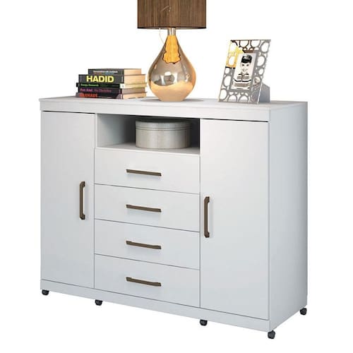 Comoda Havana Master com rodizio Branco Brilho Santos Andirá