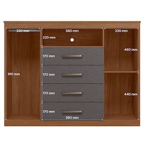 Comoda Havana Master com rodizio Jatobá Grafite: A Cômoda Havana Master é espaço e funcionalidade para seu quarto: duas portas (uma com cabideiro), quatro gavetas espaçosas e tampo. Pés elevam o móvel facilitando a limpeza e o acabamento traz um toque elegante ao ambiente.