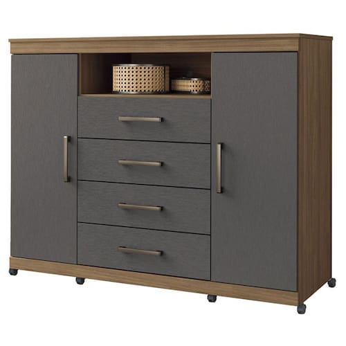 Comoda Havana Master com rodizio Jatobá Grafite Acetinado - Santos Andirá