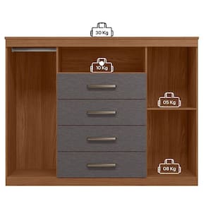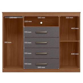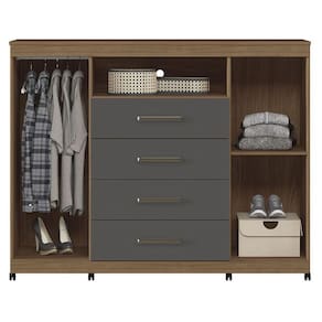 Comoda Havana Master com rodizio Jatobá Grafite: A Cômoda Havana Master é espaço e funcionalidade para seu quarto: duas portas (uma com cabideiro), quatro gavetas espaçosas e tampo. Pés elevam o móvel facilitando a limpeza e o acabamento traz um toque elegante ao ambiente.