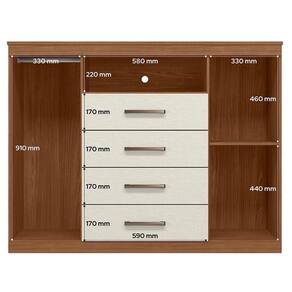 Comoda Havana Master Jatobá Areia: A Cômoda Havana Master é espaço e funcionalidade para seu quarto: duas portas (uma com cabideiro), quatro gavetas espaçosas e tampo. Pés elevam o móvel facilitando a limpeza e o acabamento traz um toque elegante ao ambiente.