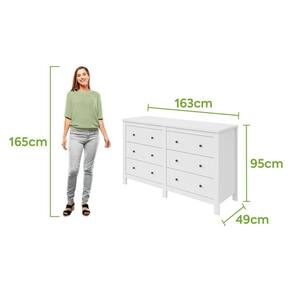 Produto em MDP/MDF; Pintura U.V. e acabamento em micro textura; Tampo de 25mm; Puxadores em metal; 06 gavetas; Gavetas com corrediças telescópicas; Pés robustos em MDF de 25mm; Fundo das gavetas e costas em HDF. Vantagens/Benefícios: Produzido com equipamentos de alta tecnologia; Produto avaliado e aprovado por um rigoroso controle de qualidade; Fácil montagem e manual de montagem simplificado; Design minimalista com um toque vintage; Acabamento com toque aveludado; Gavetas ideais para acomodação das roupas em maiores quantidades; Gavetas grandes e espaçosas com corrediças telescópicas; Tampo de 25mm para maior resistência; Pés robustos que garantem maior estabilidade.