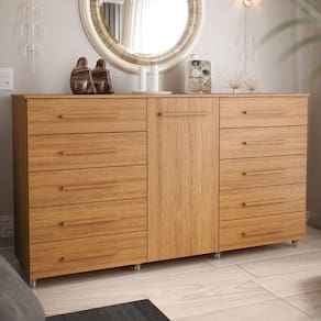 Cômoda Imperial Batrol 1 Porta 10 Gavetas Com Rodízio Freijó Freijó Transforme seu ambiente com praticidade e elegancia! A Comoda Batrol Imperial oferece amplo espaco interno, gavetas resistentes e rodizios de silicone que facilitam a movimentacao. Ideal para quem busca organizacao e estilo em um so movel. Medidas do Produto Montado
