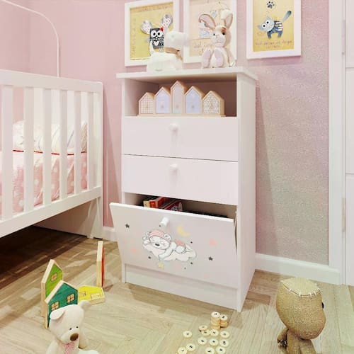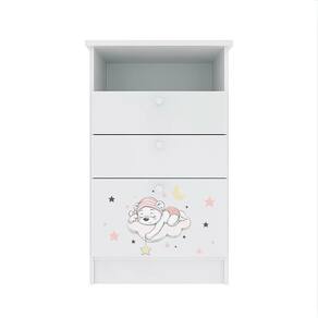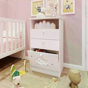 Cômoda Infantil 1 Porta 2 Gavetas 1 Nicho Estampada Kids Espresso Móveis Branco/Urso Rosa. Cômoda infantil kids possui pintura UV, impressão digital com desenho de um lindo ursinho rosa, 1 porta basculante com dobradiça de pressão e freio limitador, 2 gavetas com corrediças metálicas e puxadores em PVC. Seu esquema de montagem é pratico e fácil. Ean: 7908439696142