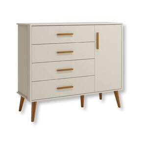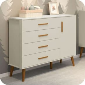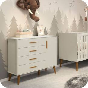 Cômoda Infantil 1 Porta e 4 Gavetas Isis Areia Fosco - Branco