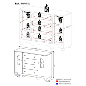 - 2 portas e 4 gavetas (frontais em MDF): amplo espaço interno para organizar roupinhas e acessórios.