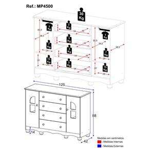 Conteúdo da Embalagem: 1 (uma) Cômoda Manual de Montagem Kit Ferragem