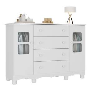 Cômoda Infantil 125cm 2 Portas com Vidro e 4 Gavetas Luna Multimóveis MP4415 - Branco