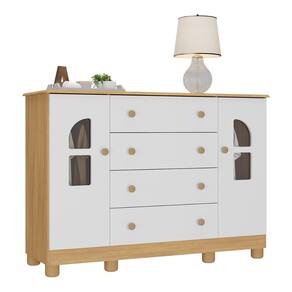 Diferenciais: - 3 anos de garantia contra defeitos de fabricação e material. - Produzida em madeira de reflorestamento (MDP 12/15mm) com acabamento acetinado (cerca de 20% de brilho): sustentabilidade e durabilidade. - 2 portas e 4 gavetas (frontais em MDF): amplo espaço interno para organizar roupinhas e acessórios. - Detalhes de vidro incolor temperado 3mm nas portas: toque charmoso que permite visualizar o interior do móvel. - Corrediças telescópicas: permitem a abertura total e o manuseio silencioso das gavetas. - Cabideiro em alumínio: acomoda as roupas para que não amassem. - Puxadores em ABS redondos e práticos. - Pés em polipropileno e rodapé: estabilidade e visual elegante. - Sistema antitombamento: proporciona segurança para o bebê e tranquilidade aos pais.