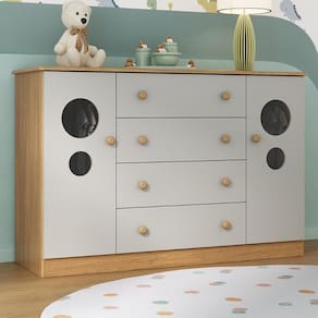 - 2 portas e 4 gavetas (frontais em MDF): amplo espaço interno para organizar roupinhas e acessórios.