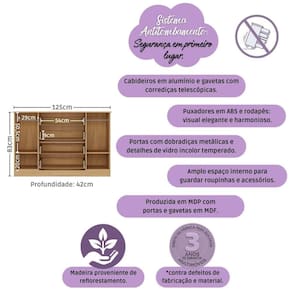- Detalhes de vidro incolor temperado 3mm nas portas: toque charmoso que permite visualizar o interior do móvel.