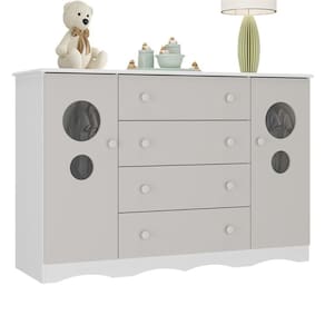 Cômoda Infantil 125cm 2 Portas Com Vidro E 4 Gavetas Sonho Multimóveis MP4475 Branco/off White
