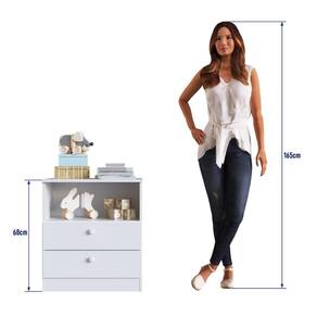 Com dimensões de 60,8x68x38,5 cm e peso de 16,65 kg, essa cômoda é compacta e leve, facilitando sua movimentação e encaixe no ambiente. Ela suporta até 16 kg e possui duas gavetas com capacidade de 3 kg cada, oferecendo espaço para organizar os pertences do seu bebê.