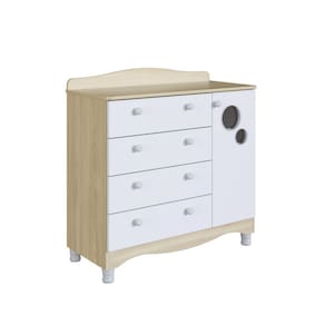 Comoda Infantil 4 Gavetas 1 Porta com Pes Encanto Completa Moveis A Comoda Infantil 4 Gavetas e 1 Porta Linha Encanto da Completa Moveis e versatil, e elegante, com caracteristicas que a destacam. Ideal para o quarto do seu bebe, alem de permitir que a use como trocador/ fraldario! Gavetas que facilitam e otimizam o espaco e aconchego para o ambiente. Produto em MDP com corredicas telescopicas, puxadores em plastico e pes com regulagem de altura, o que a torna um diferencial!