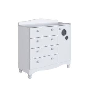 A Cômoda Infantil 4 Gavetas e 1 Porta da Linha Encanto da Completa Móveis combina praticidade e charme em um único móvel, perfeito para compor o quarto do bebê. Seu design versátil permite que também seja utilizada como trocador, trazendo ainda mais funcionalidade ao dia a dia. As gavetas espaçosas e de fácil manuseio garantem organização e otimização do ambiente, enquanto a porta oferece um espaço extra para acomodar os itens essenciais. Produzida em MDP, conta com corrediças telescópicas que proporcionam suavidade no abrir e fechar, puxadores em plástico resistentes e pés com regulagem de altura, agregando conforto e diferencial ao produto. Medidas: 93 cm de largura, 93,5 cm de altura e 41 cm de profundidade.