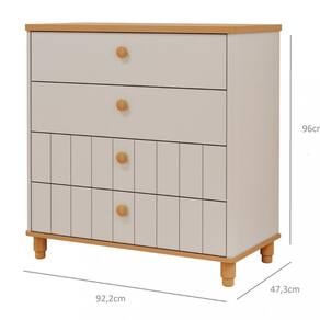 A Comoda Infantil 4 Gavetas com Pes em MDF Livia Permobili e perfeita para encantar o quarto do seu pequeno. Feita em MDF com pintura UV, ela e duravel e charmosa. Suas quatro gavetas espacosas com corredicas telescopicas facilitam a organizacao. Os puxadores de madeira macica e os cantos arredondados, assim como os pes torneados, agregam delicadeza e estabilidade. Cada gaveta suporta ate 3 kg, ideal para roupas, brinquedos e mais. Transforme o cantinho do seu filho com a Comoda Infantil Livia 4 Gavetas.