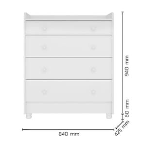 Cômoda Infantil 4 Gavetas Doce Sonho com Trocador e Pés - Qmovi - Branco