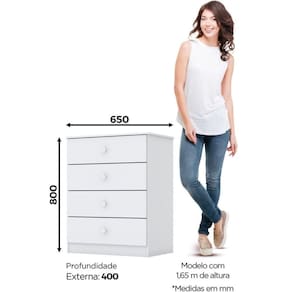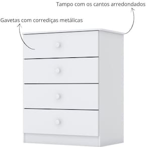 Com 4 gavetas espaçosas e corrediças metálicas, ela garante organização e fácil acesso às roupinhas e acessórios.