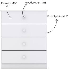Cômoda Infantil 4 Gavetas - Labirinto Branco - A Solução Ideal para um Ambiente Funcional e Moderno