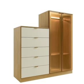 Com Acabamento na cor TauariAmbar/Off White , com linhas retas , traz um toque contemporaneo ao ambiente , As portas de Giro com Vidro Reflecta e os puxadores em alumínio, são detalhes que garantem mais beleza o espaço, alem de contar com led na parte das portas o que da um toque especial ao movel